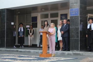 Також з теплими та щирими побажаннями до першокурсників звернулись заступник начальника головного територіального управління юстиції з питань державної реєстрації - начальник Управління державної реєстрації - Яковюк Олена Олександрівна, керівник апарату Хмельницької обласної державної адміністрації - Самолюк