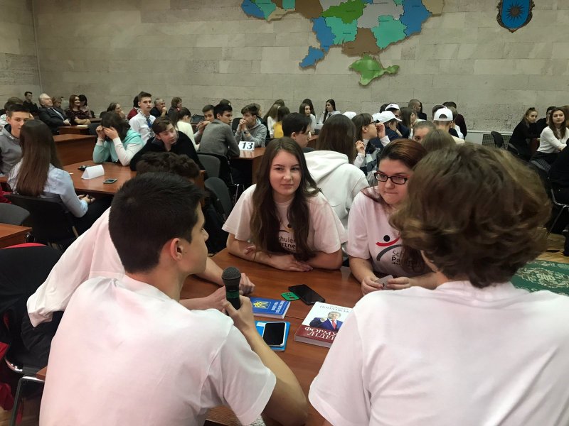 У фінальній грі, яка проходила проходила у форматі брейн-рингу за варіацією «Чеширський кіт», змагались команда «Дев’ятка» з навчально-виховного комплексу № 9 м. Хмельницького та команда «Діти Феміди» з Хмельницької спеціалізованої середньої загальноосвітньої школи І-ІІІ ступенів № 6 з поглибленим вивченням німецької мови з 1-го класу.