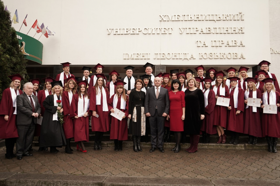 Шановні випускники, віримо, що набуті в університеті знання у сфері публічного управління та адміністрування стануть міцним фундаментом вашої майбутньої успішної діяльності та відкриють перед Вами нові можливості та перспективи професійного зростання. Бажаємо Вам не втрачати здатність творчо мислити, прагнути пізнавати нове, ставити перед собою цілі і добиватися їх. З гордістю несіть статус випускника Хмельницького університету управління та права імені Леоніда Юзькова, прославляючи рідну alma mater гідними вчинками та корисними справами. Зичимо вам натхнення, наполегливості та успіхів у всіх добрих починаннях, здійснення мрій і життєвих планів, нових звершень на професійній ниві на благо України та Хмельниччини!
