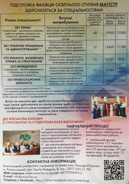Бажаємо міцного здоров’я, родинної злагоди та натхнення до нових здобутків у навчанні усім хто взяв чи планує стати учасником і переможцем Обласного математичного турніру для учнів 9-11 класів Хмельницької області. Хмельницький університет управління та права імені Леоніда Юзькова гостинно запрошує до навчання в своїх стінах на тій спеціальності, яка подобається саме Вам!