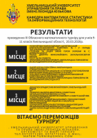 Турнір у якому взяли участь близько 100 учасників, проходив дистанційно із використанням інформаційних технологій. Учні добре підготувалися і показали гарні результати при розв’язанні задач підвищеного рівня складності. 75% учасників набрали понад 75 балів зі 100.