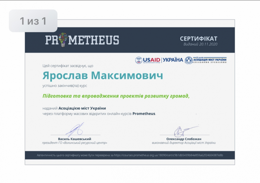 10 студентів одержали сертифікати від Асоціації міст України: Волошина Тетяна, Лапчук Вікторія, Лях Богдан, Максимович Ярослав, Мощанець Андрій, Підковенко Роман, Поцілуйко Катерина, Савалик Марина, Шобутинська Анна, Шурко Олександра.