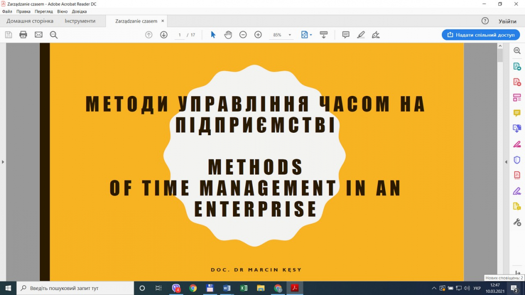 - Марцін Кеси, доктор технічних наук, доцент, почесний професор, декан Університету Бидгощ (Республіка Польща), який презентував основи управління часом в сучасних умовах інформатизації суспільства;