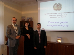 19 червня 2008 року в Інституті законодавства Верховної Ради України відбувся випуск слухачів Української школи законотворчості, серед яких цього року окрім співробітників секретаріатів депутатських фракцій і комітетів Верховної Ради України, помічників народних депутатів України, представників органів місцевого самоврядування, фахівців Національного інституту стратегічних досліджень, Головдержслужби, інших центральних органів виконавчої влади був і представник нашого університету, асистент кафедри теорії та історії держави і права Габінет Дмитро Анатолійович (на знімку зліва на право: асистент кафедри теорії та історії держави і права ХУУП Габінет Д.А., директор Української школи законотворчості Інституту законодавства ВРУ, кандидат юридичних наук, Заслужений Юрист України Богачова О.В., старший консультант відділу проблем розвитку національного законодавства Інституту законодавства ВРУ, випускник ХУУП 2006 року Данилюк Ю.В.)