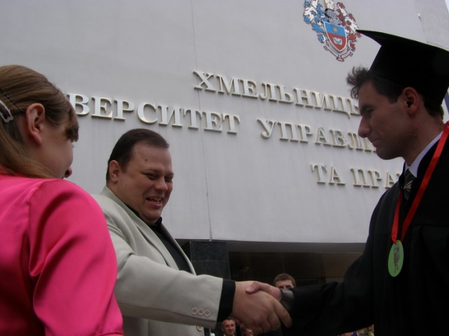 Із глибоко шановних гостей на святі також виступали: керівник апарату Хмельницької обласної ради Горнишева С.М., заступник голови Хмельницької обласної державної адміністрації Вавринчук М.П., заступник Хмельницького міського голови Байдич В.Г., голова Державної екзаменаційної комісії юридичного факультету, начальник Хмельницького територіального управління державної судової адміністрації Приступа І.І., член ради сприяння діяльності університету, Директор Хмельницької філії комерційного банку «Приватбанк» Браницький Ю.О. (який, до речі, вручив усім випускникам кредитні картки).