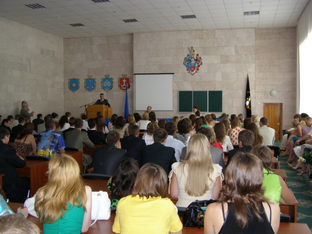Під час свого виступу Віталій Олуйко звернув увагу присутніх на те, що в умовах сьогодення дійсно конкурентноздатним є лише фахівець з повною вищою освітою, тому він висловив сподівання побачити більшість випускників серед студентів п’ятого курсу університету.