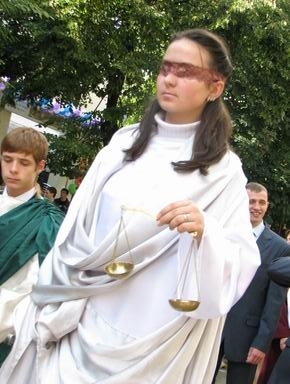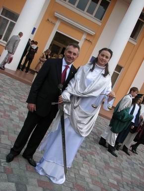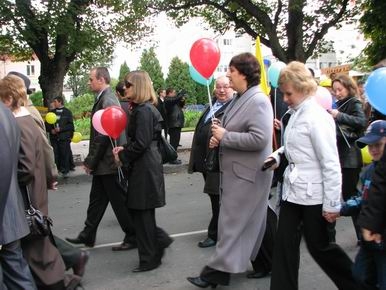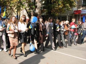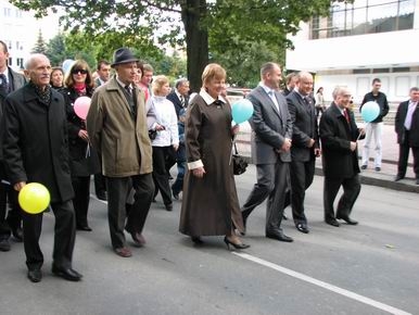 На чолі нашої колони, як завжди йшли символи університету – Феміда та мудреці з книгами в руках (які потім були передані для можновладців міста в якості подарунка). А вже за ними крокували представники ректорату, викладачі та співробітники університету. Окремою шеренгою цього разу йшли члени студентського самоврядування.