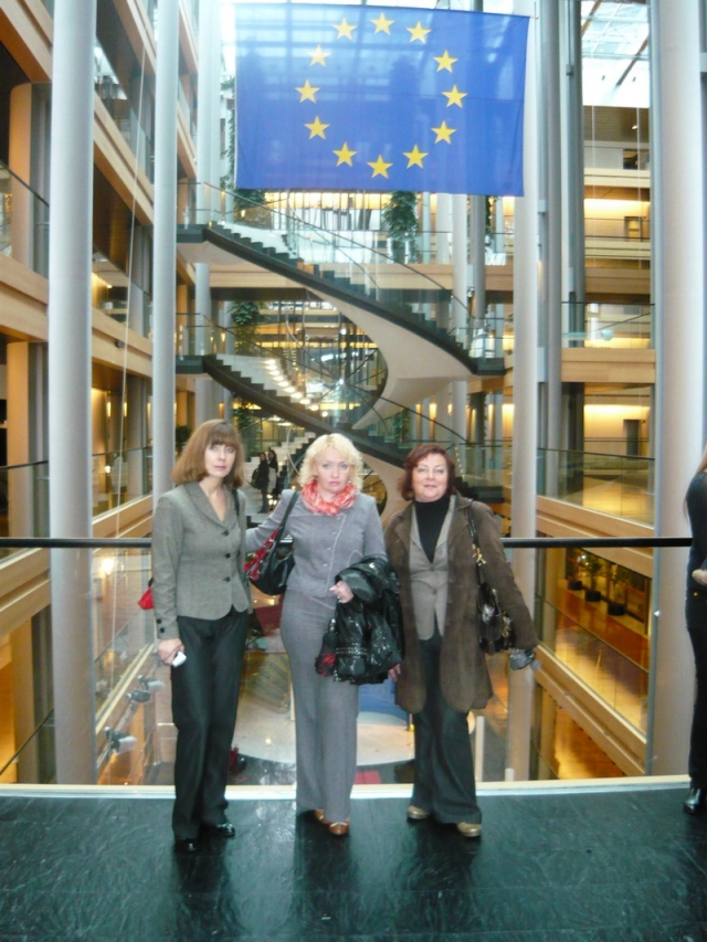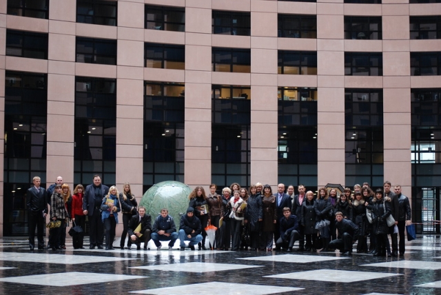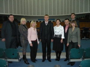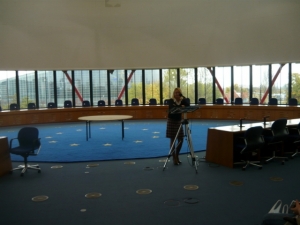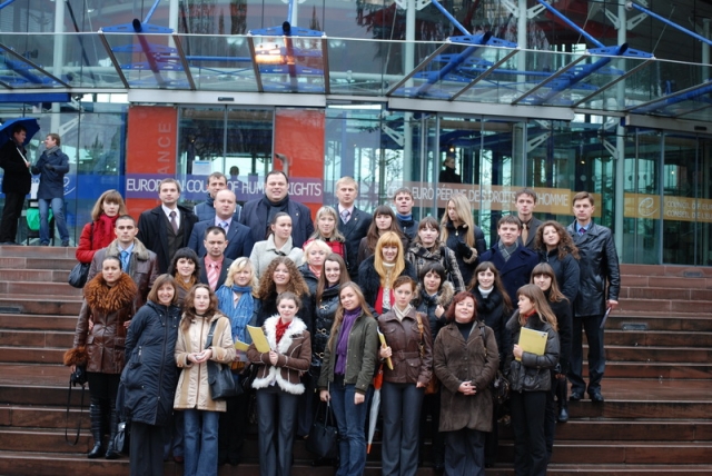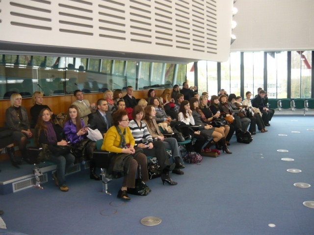Після цього делегація відвідала Європейський суд з прав людини (благо, всі ці будівлі знаходяться практично поруч). І тут наші юристи відвели душу!!! На голову Ольги Дмитренко (юриста, що займається в суді справами України) посипався шквал питань!!! Ми дізнались про те, що зі 100 тисяч позовів за рік від України до суду надходить 10 тисяч, при цьому 90% з них повертаються, як такі, що не належать до компетенції суду. Виявляється, до цієї інстанції можуть звертатися не лише фізичні особи, а й юридичні (наприклад цілі держави), проте трапляється це дуже рідко! Разом з цим, рішення суду є лише рекомендаційним, а не обов’язковим, хоча ухилитись від його виконання просто неможливо, адже існують санкції Євросоюзу!