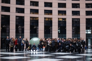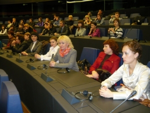 Ранок 28 жовтня знову був діловим, адже нас чекав офіційний візит до Європарламенту! Під’їхавши до цієї величної споруди у всіх перехопило подих – унікальний архітектурний ансамбль зі скла та металу, неймовірних розмірів та форм будівля заставили нас перенестись у наступне тисячоліття! Біля входу вже чекав екскурсовод, проте потрапити в приміщення не так вже й просто, так як фейс-контроль, перевірка та обшук обов’язкові для всіх (хоча все набагато простіше ніж у нашій Верховній Раді)!