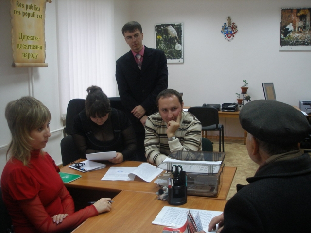 Наша юридична клініка вже тривалий час тісно та плідно співпрацює з органами юстиції. 12 грудня 2008 року в рамках цієї співпраці вона здійснювала консультування громадян спільно з Хмельницьким обласним управлінням юстиції. Зокрема, до юридичної клініки завітали завідувач сектору представництва інтересів держави в судах Луков Андрій Васильович та головний спеціаліст зазначеного сектору Присяжний Олексій Іванович.
