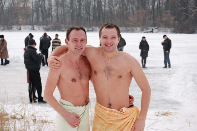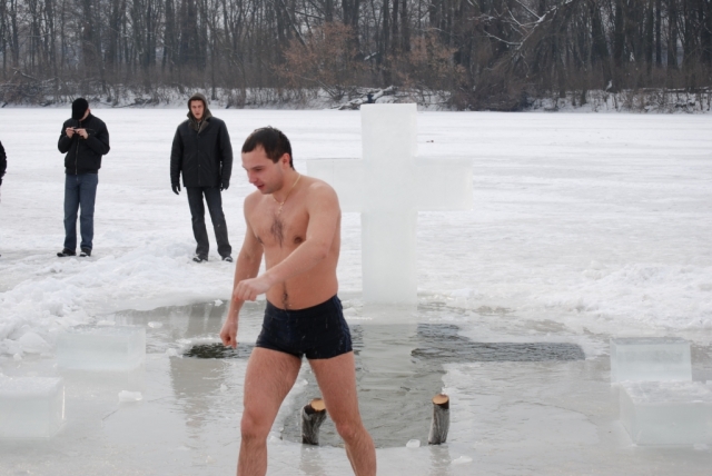 кожним роком кількість бажаючих лізти в ополонку збільшується. Так і викладач нашого університету Юрій Миколайович Ту ровець спробував свої можливості та скупався в святій воді. До речі, з ХУУПівців на Південному Бузі він був не один - випускник університету та співробітник Господарського суду Тарас Степчук також приєднався до компанії моржів! Враження яскраві, незабутні і трохи змерзлі!