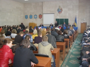 Перед присутніми виступили: в.о. ректора, канд. істор. наук Чорнрй Л.І., перший проректор університету, доктор юридичних наук, професор, Заслужений юрист України Кондратьєв Р.І., проректор з наукової роботи, доктор юридичних наук, професор Стефанчук Р.О., проректор з нормативного та науково-методичного забезпечення, декан заочного факультету, канд. наук з держ. упр., доцент Савицький В.Т., проректор з економічної роботи і практики, канд. наук з держ. упр., доцент кіндзерський С.А., декан юридичного факультету, канд. юр. наук, доцент Омельчук О.М., декан факультету управління та економіки, канд. ек. наук Григорович А.В.