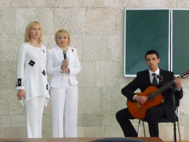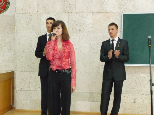 На концерті з нагоди Великої Перемоги перед присутніми виступив в. о. ректора Хмельницького університету управління та права Л.І. Чорний. З особливим трепетом в душі студенти вітали зі святом першого проректора університету, доктора юридичних наук, професора Р. І. Кондратьєва, який на свої очі бачив страхіття Великої Вітчизняної Війни. З вітальним словом виступив і голова Студради Олександр Матвійчук.