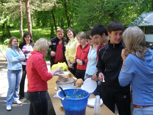 Все розпочалось із спортивних змагань між викладачами та студентами на мальовничій базі ім. С. Мацишена в селі Пирогівці. Власне початок змаганням поклали риболови, які ще о шостій годині ранку закинули вудки, аби наловити риби на запашну уху, яка, до речі, вийшла неперевершеною! Звісно не обійшлося і без колективного приготування в казані каші на справжньому багатті.