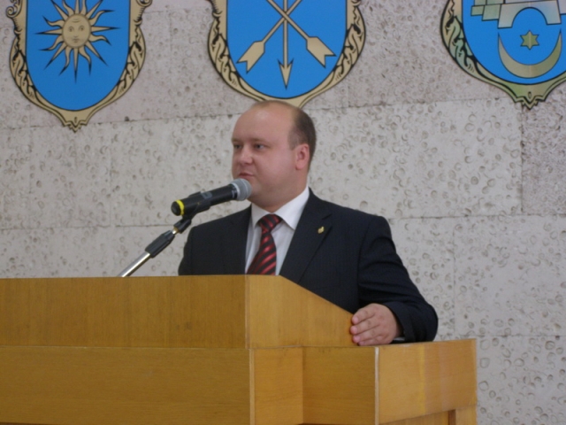 З вітальним словом перед випускниками, батьками та друзями, що переповнювали актовий зал університету, виступив в. о. ректора Хмельницького університету управління та права, канд .юр. наук, доцент О. М. Омельчук. До привітань долучились проректори університету, представники навчальних частин, викладачі та студенти!