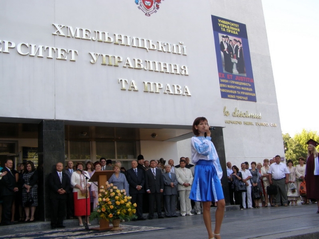 А потім студенти першого курсу вперше у своєму житті чули «Гаудеамус» на власну честь та співали гімн Хмельницького університету управління та права. Може і виходило у них не дуже складно, та за 5 років ще добре вивчать рідну серцю кожного випускника мелодію Альма-Матер!