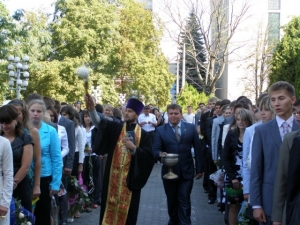 1 вересня площа біля центрального корпусу університету була переповнена схвильованими першокурсниками, гордими батьками та поважними гостями. Традиційні урочистості з нагоди Дня знань розпочалися з виступу в. о. ректора університету, кандидата юридичних наук, доцента О. М. Омельчука. Олег Миколайович привітав усіх присутніх зі святом, студентам, і , особливо першокурсникам, побажав успіхів у навчанні та науковій роботі, а професорсько-викладацькому складу терпіння та подальших звершень на викладацькій ниві.