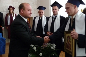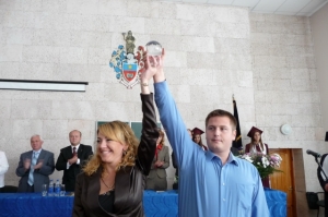 Отримавши дипломи, магістри передали для прийдешнього покоління традиційний символ магістратури «Державна служба» - кришталеву кулю з вигравюрованою мапою України та Державним гербом – як символ єдності державної влади в Україні. Зі сцени було сказано ще багато теплих слів подяки викладачам і керівництву університету, а на згадку випускники 2009 року подарували університету ікону Казанської Божої матері. Тож нехай вона береже усіх нас!