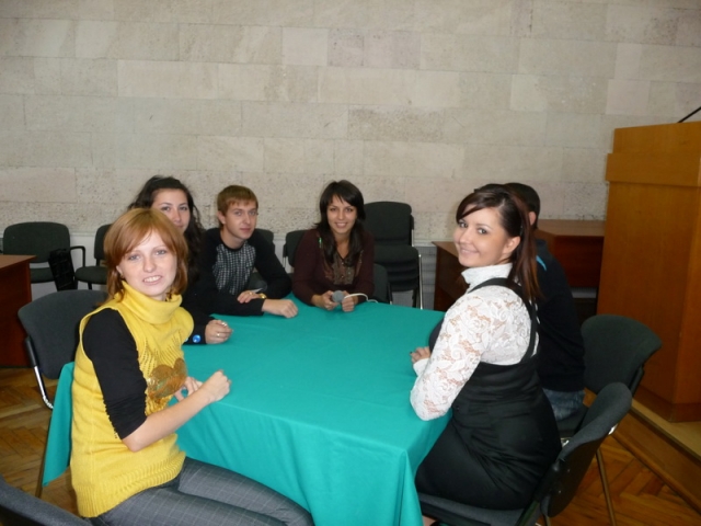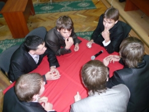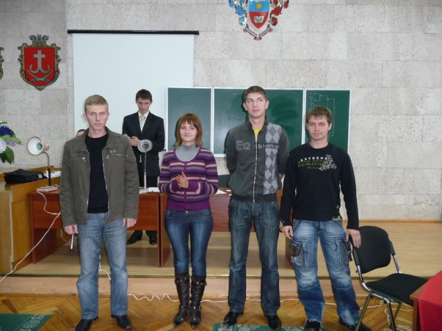 До фіналу вийшли, можна сказати, ветерани гри, що протягом багатьох років ділили між собою перші місця в чемпіонатах Хмельницького університету управління та права з «Брейн-рингу» – команда 5 (капітан Сорокін Олексій) та 6 (капітан Колєнов Євген) курсів факультету управління та економіки. Не дивуйтесь – це вже стало гарноютрадицією, щоб під час тижня юридичного факультету перемогу здобувала команда факультету управління та економіки, а під час тижня факультету управління та економіки - навпаки!