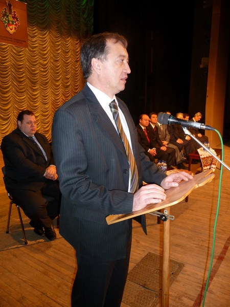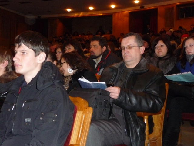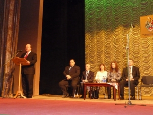 О 10 годині ранку зал театру ім. М. Старицького вже був переповнений. З вітальним словом перед присутніми виступив виконувач обов’язків ректора Хмельницького університету управління та права, кандидат юридичних наук, доцент Олег Миколайович Омельчук. До гостей також звертались: декан факультету управління та економіки, кандидат економічних наук, доцент А. В. Григорович, заступник декана юридичного факультету В. І. Нагнибіда, в. о. декана заочного факультету, кандидат