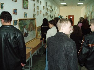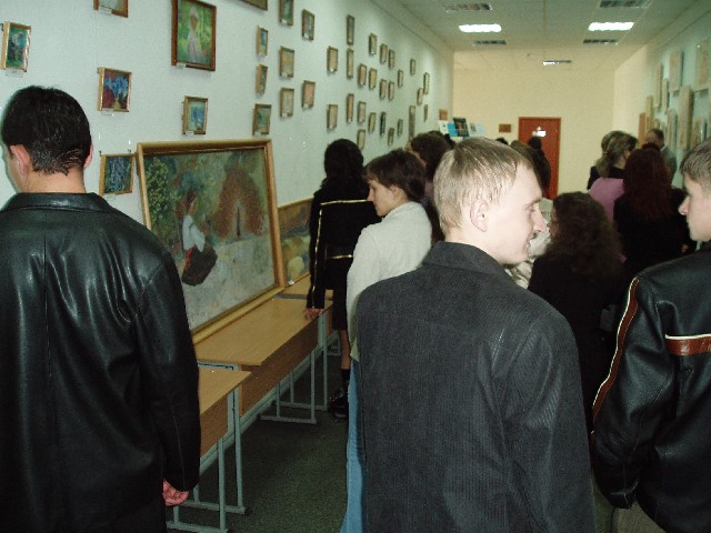 На виставці під багатообіцяючою назвою «З любов’ю до України», було представлено шістдесят одну репродукцію картини Петра Івановича Холодного і всі, вони несхожі одна на одну і неповторні, одразу ж привернули увагу студентів.