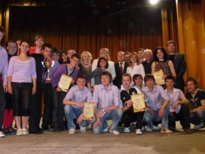 А ось до перемоги небайдужими були усі команди, що в цей вечір виступали на сцені! Олег Миколайович оголошуючи результати гри довго інтригу не тягнув і вручив грамоту переможця фестивалю команд КВН «Торба сміху 2010» для команди «Молодіжна збірна Вінниці».