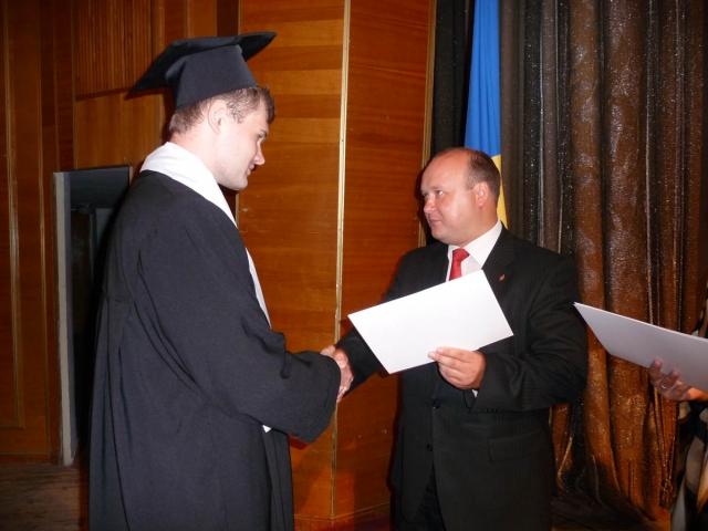 Секретар єпархіального управління Хмельницької єпархії УПЦ, протоієрей Олександр подарував для університету ікону та благословив випускників на щасливе професійне майбутнє.