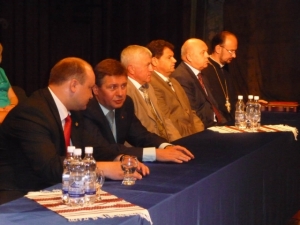 Офіційна ж частина урочистостей відбувалась в театрі ім. М. Старицького. У складі почесної президії на сцені були присутні проректори університету, декани факультетів, представники Хмельницької обласної ради, обласної державної адміністрації, Хмельницької міської ради, представники судових та правоохоронних органів, банків, державних та приватних установ, підприємств, організацій, представники духовенства.