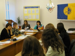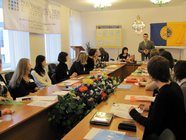 Першою, на тему «Діяльність Європейського суду з прав людини та компетенція урядового уповноваженого в справах Європейського суду з прав людини» доповідала О. В. Ревуцька (заступник начальника відділу нотаріату Головного управління юстиції в Хмельницькій області).