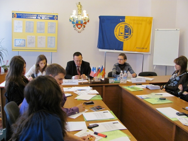 З вітальним словом перед учасниками заходу виступили В. І. Нагнибіда (в.о. декана юридичного факультету Хмельницького університету управління та права, кандидат юридичних наук) та Міла Дегодь (голова Хмельницького осередку Ліги студентів Асоціації правників України).