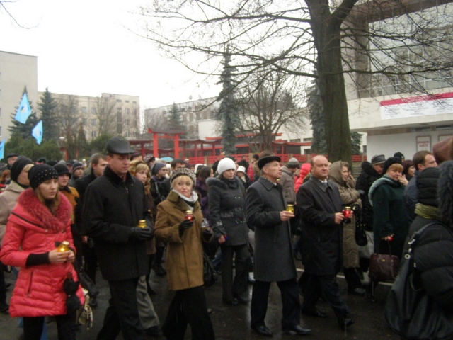 Скорботна хода за участю керівництва облдержадміністрації, обласної та міської рад, лідерів громадсько-політичних об’єднань, представників духовенства та молоді вирушила до пам’ятного знаку "Ангел Скорботи", де пройшла поминальна панахида. Вшановуючи пам’ять загиблих, учасники заходу поставили сотні запалених лампадок до пам’ятника.