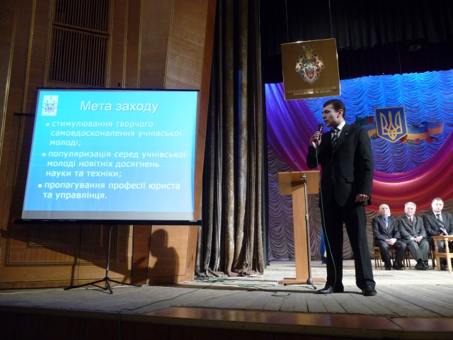 Метою даного заходу є стимулювання творчого самовдосконалення учнівської молоді; виявлення обдарованих учнів та надання їм допомоги у виборі професії, формування творчого покоління молодих науковців; підвищення інтересу до поглибленого вивчення базових, спеціальних та фахових дисциплін; популяризація серед учнівської молоді новітніх досягнень науки та техніки; пропагування професії юриста та управлінця.