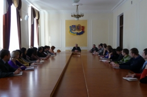 У слухачів магістратури спеціальності «Державна служба» продовжується ознайомча практика в органах виконавчої влади та місцевого самоврядування. Початок практики в Хмельницькій обласній раді був ознаменований зустріччю з головою ради Дерикотом Миколою Васильовичем, який поспілкувався з магістрантами і дав відповіді на усі питання, що цікавили майбутніх державних службовців.