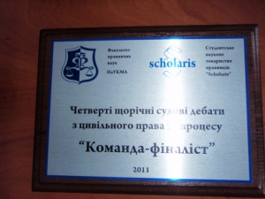 12-13 березня в Національном університеті "Києво-Могилянська академія" проходили Четверті щорічні судові дебати з цивільного права та процесу. У цьому змаганні брали участь дві команди, котрі представляли наш університет: Тетяна Бундз та Олег Хащевич, Ірина Продан та Дмитро Скоропад (усі студенти 5 курсу юридичного факультету).