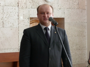 На урочистостях з нагоди 66 річниці великої Перемоги з вітальним словом виступив ректор університету Олег Миколайович Омельчук. Усі глядачі, що прийшли до актового залу, затамувавши подих слухали виступ ветерана ВВВ, доктора юридичних наук, професора, Заслуженого юриста України Радомира Івановича Кондратьєв.
