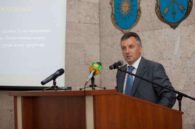 На пленарному засіданні з доповідями виступили Л. В. Бориславський (завкафедри конституційного права Львівського національного університету ім. І. Франка, Заслужений юрист України), В. М. Олуйко (голова Хмельницького обласного територіального відділення Антимонопольного комітету, доктор наук з державного управління, професор, Заслужений юрист України), Л. В. Бернадська (заступник голови Хмельницької облдержадміністрації), О. М. Завальнюк (ректор Кам’янець-Подільського національного університету ім. І. Огієнка, професор, академік Академії наук вищої освіти України, заслужений працівник освіти України), В. І. Пила (завідувач кафедри державного управління та місцевого самоврядування ХУУП, доктор економічних наук, професор), О. С. Чмир (заступник директора науково-дослідного економічного інституту Міністерства економіки України, доктор економічних наук, професор), Г. І. Гоцький (начальник Управління державної служби Головдержслужби України в Хмельницькій області).