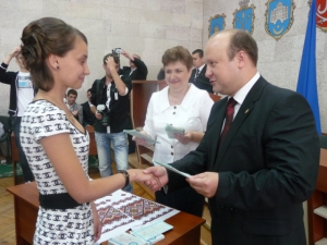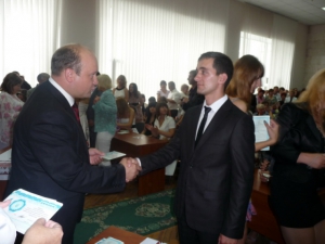 Від імені голови Хмельницької обласної ради до випускників звернувся начальник відділу внутрішньої політики, адміністративно-територіального устрою та інформаційного забезпечення ради Віктор Іванович Ніконішин. Особливо приємно було почути схвальні відгуки про результати навчання студентів факультету управління та економіки з уст голови Державної екзаменаційної комісії, керуючої справами виконавчого комітету Хмельницької міської ради Людмила Петрівна Черевченко.