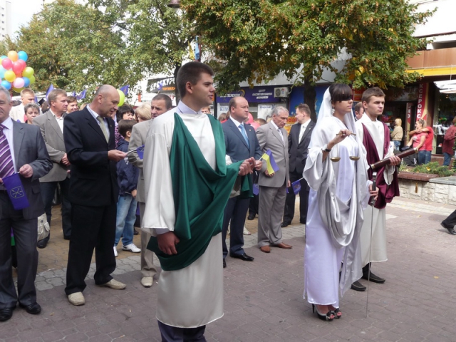 Як завжди, очолювала святкову ходу богиня правосуддя Феміда (цьогоріч, цю відповідальну місію виконала студентка 2 курсу ЮФ, володарка титулу «Краса 2011» Ірина Власенко), допомагали для Феміди мудреці та почесні магістри. Потужним блоком було представлено і студентське самоврядування: під керівництвом в. о. голови Студентської ради Юлії Томич усі департаменти Студентської ради, разом з представниками різних клубів та студій яскраво вирізнялися серед святкової ходи; не менш потужно вітали рідне місто і члени профспілки студентів університету на чолі з головою Профкому профспілки Юлією Ференс.