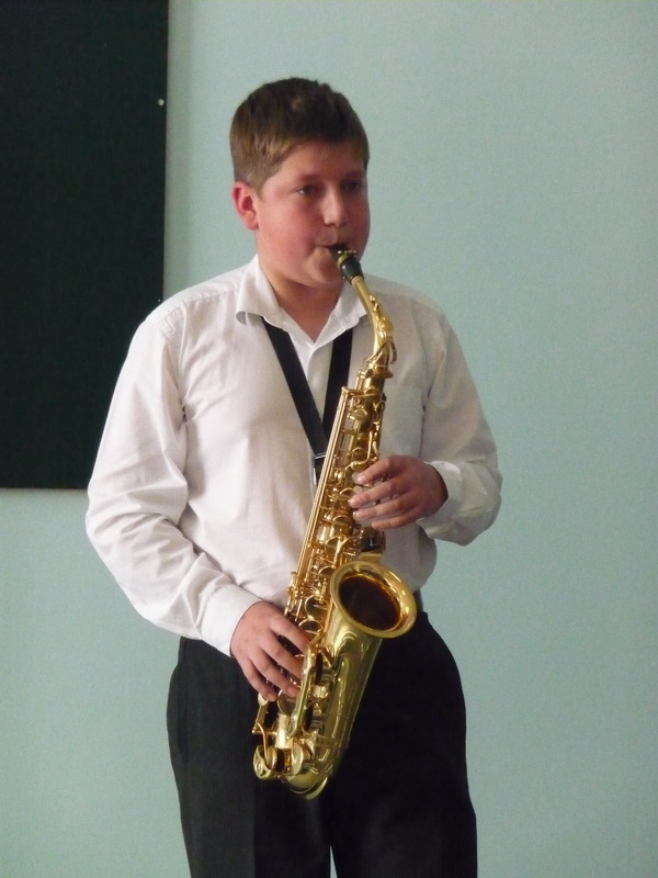 Приємно було почути вітання і від учнів ліцею №17, з яким вже багато років поспіль співпрацює наш університет. В подарунок від ліцею на святі виступив юний саксофоніст Владислав Довгань.