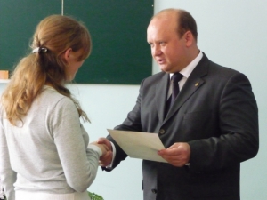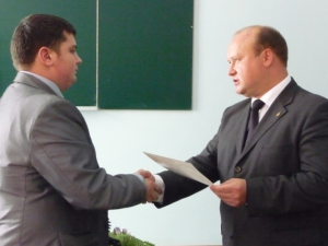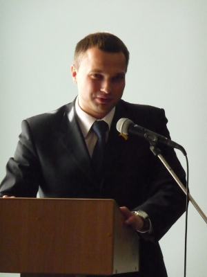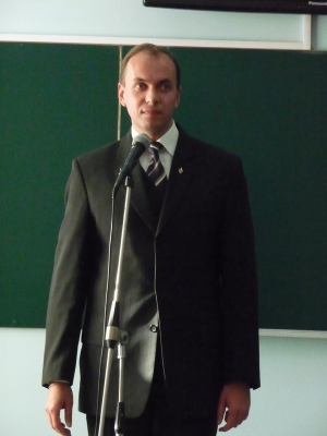 Від імені деканату факультету до присутніх звернувся заступник декана юридичного факультету Д. А. Габінет. А слово від випускників тримав Ю. М. Туровець.