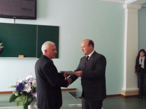З вітальним словом перед присутніми виступив ректор університету, канд. юр. наук, доцент О. М. Омельчук. В щирій домашній атмосфері Олег Миколайович привітав колег та студентів, побажав лише нових звершень і досягнень на ниві юриспруденції. Звісно, з нагоди такого свята кращі науково-педагогічні працівники та студенти отримали почесні грамоти.