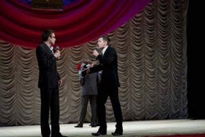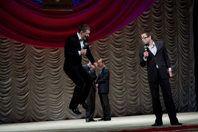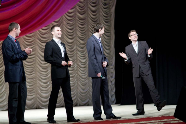 Тож до вашої уваги яскравий калейдоскоп подій того вечора. Першими підняли настрій для глядачів студенти у запальному колективному джайві (хореограф). Справжнім відкриттям став для усіх присутніх акторський талант Ю. В Білоусова в театральній постановці викладачів «Сто тисяч». Ще одним сюрпризом для усіх, а особливо для 5 курсу юридичного факультету, стала пісня-дебют у виконанні їхньої однокурсниці Аліни Вовк. Проте жоден художній номер за гучністю оплесків, шквалом емоцій та вибухом гумору не міг конкурувати з виступом легендарної команди КВН «Штрих-код». Саме так, Сашка Вахідов, Сергій Голов, Юрка Вендера, Саня Забродський та Ігор Цимбалюк вкотре, через багато років змусили увесь зал 15 хвилин аплодувати стоячи!