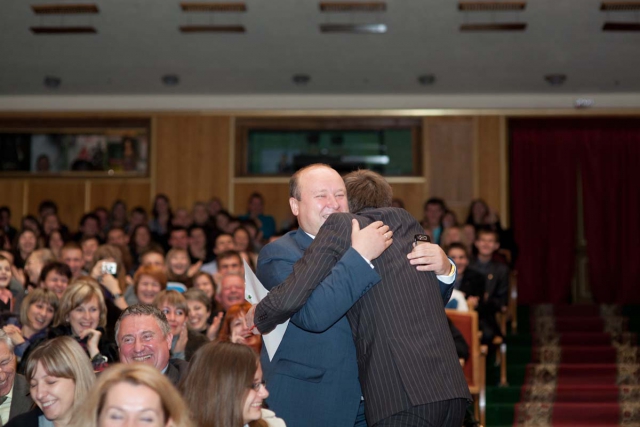 Але, про все по черзі. Цьогоріч ведучими офіційної церемонії нагородження були Юлія Томич (4-ФУЕ, голова Студентської ради) та Вадим Квик (3-ЮФ). Тож, на думку студентів, за результатами голосування номінації було роздано наступним чином: