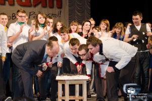 Після завершального слова журі на сцену вийшов Олег Миколайович для оголошення переможця фестивалю (хоча, як журі дійшло остаточного висновку важко сказати, бо фаворитів було явно більше 10 і навіть глядачі розгубились). Та журі у нас професійне, не перший рік судить КВН і цього вечора, вже далеко після 22:00 грошову винагороду за перемогу у фестивалі отримала ужгородська команда «Тяп-Ляп»! А потім команда-іменинник «Отдыхаем вместе» разом з ректором університету та всіма учасниками задували свічки на святковому торті і загадували бажання… «Вища Українська Ліга, «Голосяший КиВиН», Вища ліга КВН у Москві…і так ділі»