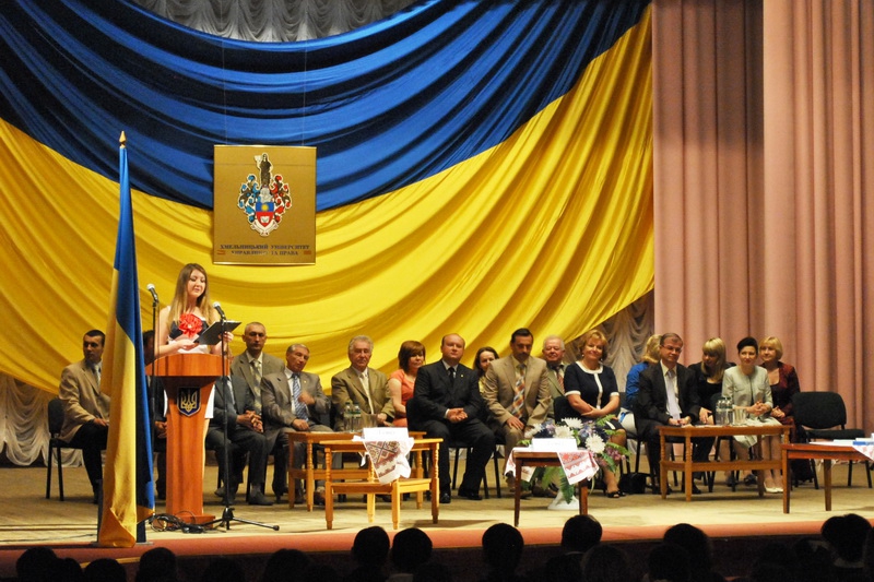 З вітальним словом урочистості дня відкривав ректор університету Олег Миколайович Омельчук. До присутніх з теплими словами звернулися і голови Державних екзаменаційних комісій: Бережний Сергій Дмитрович - суддя Апеляційного суду Хмельницької області, Олійник Юрій Петрович - заступник Голови Господарського суду Хмельницької області та Заярнюк Ольга Сергіївна - начальник Головного управління Пенсійного фонду України в Хмельницькій області. І кожен голова ДЕКу в своєму виступі згадував, наскільки високий рівень знань показали наші випускники на іспитах.