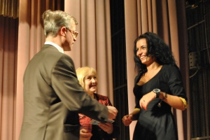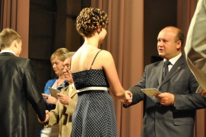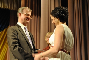 Здавалося б, щороку усі випускники виходять за дипломами на сцену з радісним хвилюванням і щасливими обличчями, але щоразу для нашого університету це свято нових посмішок та позитивних емоцій – були вони й сьогодні. Від імені випускників 2012 року до своїх колег та науково-педагогічного колективу університету зі словами вдячності звернулася Світлана Альбертівна Локтіонова.