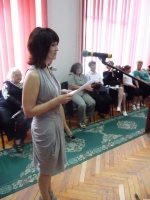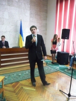 Наказ про вручення дипломів зачитала декан факультету управління та економіки Наталя Петрівна Захаркевич. Трохи схвильовано, проте напрочуд щиро та емоційно перед присутніми виступив випускник 2012 року Тарас Радішевський.