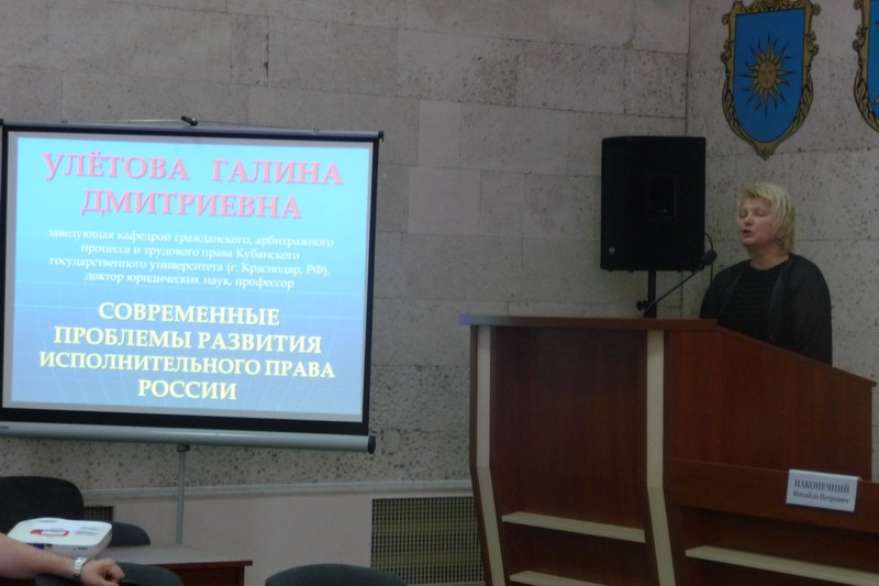 Серед присутніх науковців хотілося б відмітити присутність на конференції доктора юридичних наук, професора Галини Дмитрівни Ульотової – завідувача кафедри цивільного, арбітражного процесу та трудового права Кубанського державного університету, з яким укладено договір про співпрацю; а також кандидата юридичних наук, доцента Світлани Володимирівни Щербак - доцента Української академії банківської справи Національного банку України, які є провідними вченими у галузі виконавчого провадження в Росії та Україні.