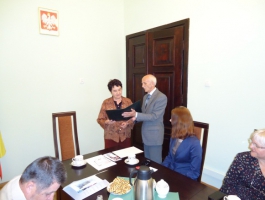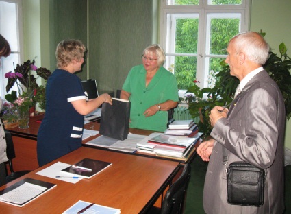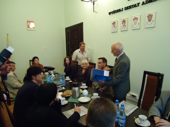 Під час засідання Ректорської колегії ВША, що відбувалося 22 червня в Сенатській залі Школи, керівник делегації Савицький В.Т. передав ректору, доктору, професору пані Вєславі Коженьовскій вітальну адресу від ректора Хмельницького університету управління та права, кандидата юридичних наук, доцента Омельчука О.М., а також спільно з Баюком М.І. вручив ректору пані Вєславі Коженьовскій, канцлеру пані Ренаті Росовскій, деканам факультетів панам Антонію Осєрді, Аркадіушу Вонсіньскому, Мачею Плашевскому, помічникам ректора і канцлера пані Ірені Глушиньскій та пані Марії Жильцовій сувеніри з українською, хмельницькою та університетською символікою. Пані Вєславі Коженьовскій було також вручено запрошення щодо візиту делегації Вищої Школи Адміністрування на урочини з нагоди 20-річного ювілею Хмельницького університету управління та права, що відбуватимуться 19 вересня 2012 року.