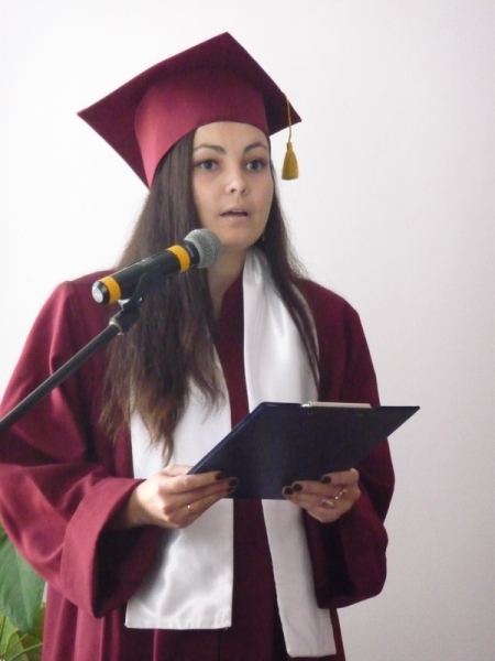 Урочисте вручення дипломів розпочалося з виступу декана факультету управління та економіки, кандидата економічних наук, доцента Наталії Петрівні Захаркевич, яка і оголосила наказ по університету. Варто зауважити, що з 30 випускників, в цей день червоні дипломи отримали 12 осіб.